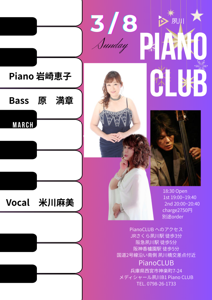 2026.3/8(日)P.岩崎恵子 B.原満章 @Piano CLUB(夙川)